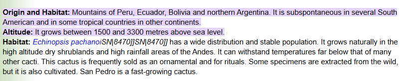 I mostly own a species of cacti called Trichocereus pachanoi (colloquially known as "San Pedro"). To figure out how much sun the species needs, we need to find its habitat. Some quick research shows that San Pedro is native to Ecuador, Peru, and Colombia, specifically the mountainous region.