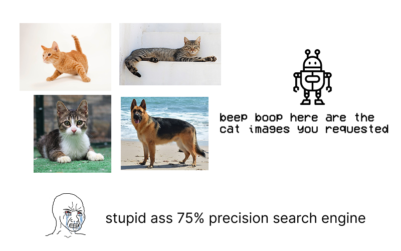 What about a non-computer scenario? If you bump into someone you know but you're bad at names, you should only say their name if you're very confident you remember what it is (high precision) and not start listing off names like a psychopath (high recall).